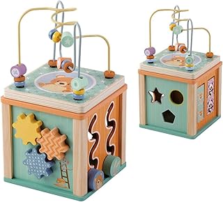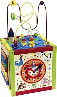 Holzspielzeug Multifunktionswürfel mit Motorikschleife Steckspiel Zahnräder UVM