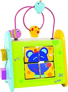 Boikido 80834098 - Multi-Aktivitätentisch aus Holz mit Motorikschleife, Sortierspiel, Labyrinth und Puzzle, 1 Stück