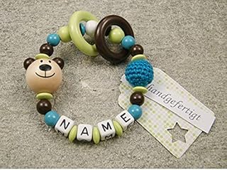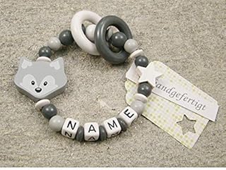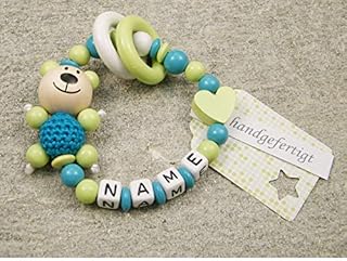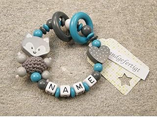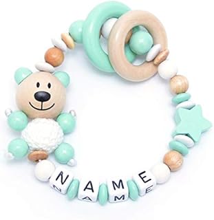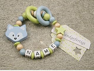 kleinerStorch Baby Greifling Rassel personalisiert mit Namen | Mädchen & Jungen Beißring - Lernspielzeug als Geschenk zur Geburt, Taufe - Fuchs und Herz in mint grau 1 Angebot ab 16,95 € Baby Greifling Beißring geschlossen mit Namen - individuelles Holz Lernspielzeug als Geschenk zur Geburt Taufe - Jungen Motiv Bär in babyblau Die eingearbeiteten Namensperlen haben abgerundete Ecken, so kann sich das Baby nicht verletzen. Wir fertigen jeden Greifling mit Namen sowie alle Beißringe und Rasseln liebevoll in Handarbeit. Greifling mit Namen: spricht die Sinne eines Babys an. Unser Greifling mit dem Namen des Kindes bietet gleich mehrere Erlebnisse auf einmal. Er ist so gestaltet, dass ihn Dein Kind leicht greifen und festhalten kann. Die runde Form ist für kleine Hände ideal. Dein Kind kann ausprobieren, wie sich