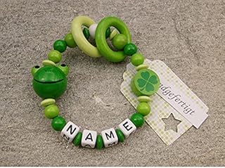Baby Greifling Beißring geschlossen mit Namen - individuelles Holz Lernspielzeug als Geschenk zur Geburt Taufe - Mädchen Jungen Motiv Frosch in grün