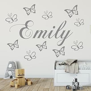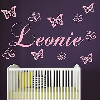 Wandtattoo Kinderzimmer personalisiert Wunsch Namen mit 10 Schmetterlingen Jungen.Mädchen Wandaufkleber Baby Anfertigung 21 Farben