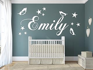 Wandschnörkel® Aufkleber AA130 Kindernamen Schmetterlinge+ Sterne Namen Spruch Wandtattoo Kinderzimmer Türschild Baby Mädchen Jungen Türaufkleber, personalisiert ++VIELE FARBEN