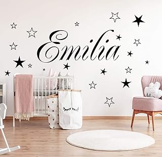 Wandschnörkel® Aufkleber HM~AA120 Kindernamen +20 teiliges Sterne Wunsch Namen Wunschnamen Wand Spruch Wand Tattoo Kinderzimmer Türschild Baby Mädchen Jungen personalisiert