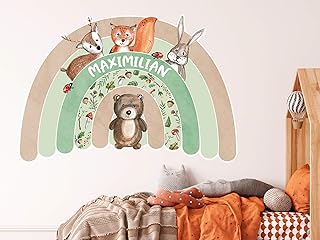 GRAZDesign Wandtattoo Regenbogen mit Namen personalisiert, Kinderzimmer Aufkleber, Waldtiere für Jungen und Mädchen / 84x57cm