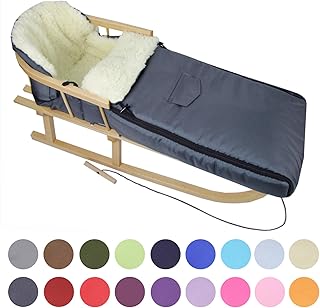 BambiniWelt24 BAMBINIWELT Kombi-Angebot Holz-Schlitten mit Rückenlehne & Zugseil + universaler Winterfußsack (90cm), auch geeignet für Babyschale, Kinderwagen, Buggy, aus Wolle Uni ()