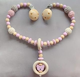 ARTESTAR Kinderwagenkette Holz Baby Kinderwagen Kette Spielzeug Neugeborene Kinderwagenkette GehäKelt Schnullerkette Kette Kinderwagen (Grau-1)