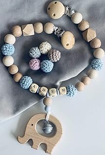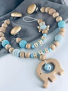 Kinderwagenkette Und Schnullerkette Mit Namen Set Elefant, Teddy Glöckchen personalisiertes Baby Geschenk