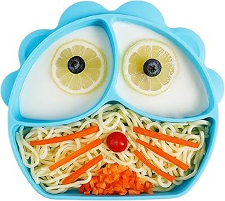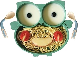Yafane Baby Teller Silikon Tischset Set für Baby Kleinkinder und Kinder mit Babylöffel Tragbar BPA-freie Babyteller schüssel Rutschfest mit Saugnapf Abwaschbar für Spülmaschine Mikrowelle (Grün-Eule)