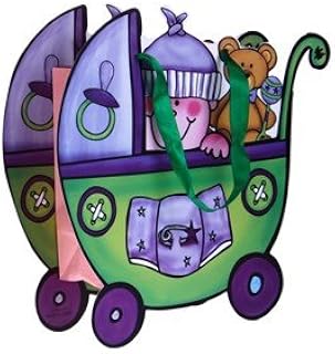 DISOK - Geschenktasche & Präsentation Kinderwagen grün - Taschen für Babys, Neugeborene, Kindergeschenke, Taufe, Babyparty, Kinderparty, originelles und günstiges Geschenk