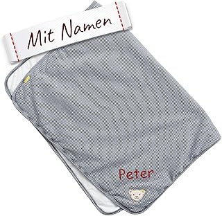 LALALO Steiff Babydecke bestickt mit Namen, Mädchen & Junge Kuschel- und Krabbeldecke, Personalisierte Decke mit Name für Babys als Geschenk zur Geburt, Geburtstag & Taufe (Navy/Dunkel Blau)