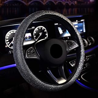 Universal Auto Lenkradschoner, 38CM / 15'' Lenkradhülle Lenkrad Abdeckung mit Diamanten Lenkradbezug Anti Rutsch Leder Anti Rutsch Atmungsaktiv Lenkradabdeckung, von DUBENS (Schwarz)