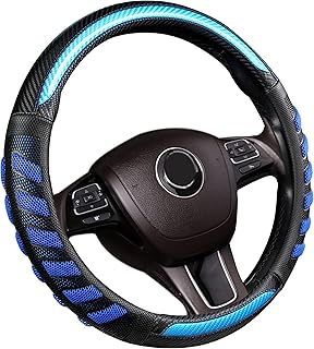FAVTTSTOM Lenkradbezug Auto, 37-38cm Lenkradbezug Leder, Bienenwabe Anti Rutsch Universal Lenkradhülle Lenkrad Abdeckung Kohlefaser (Blau)
