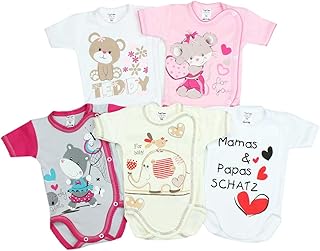 Details: * Niedlicher, kurzärmeliger Baby Wickelbody mit tollen Prints in schönen Farben für Mädchen im attraktiven 5er Set * Weicher, trageangenehmer Stoff aus 100% Baumwolle für den besten Tragekomport und optimale Atmungsaktivität * Modische Designs - eine Kombination aus fantasievollen Farben und süßen Prints * Bewährter Schnitt mit praktischen Druckknöpfen an der ganzen. Unser Sortiment an Wickelbodys in Kurzarm für Mädchen lohnt den Besuch! Hol dir ein Multipack von schlichten weißen Kurzarmbodys im T-Shirt-Design oder Kombi-Sets aus Leggings und ärmellosem Oberteil in bezaubernden Prints und Farben.Entdecke Wickelbody-Sets in neutralen Farben aus weicher Baumwolle und Jersey, die die Alltagsgarderobe der Kleinen ergänzen.