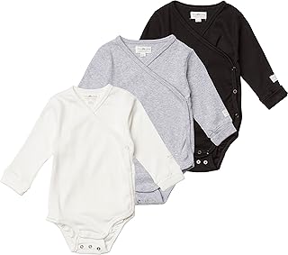 Baby Body Langarm Wickelbody 3er Pack für Neugeborene Jungen & Mädchen Unisex 100% Baumwolle