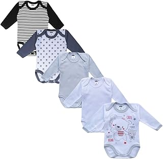 Unisex Baby Langarm Body aus 100% Baumwolle im 5er Pack, Baby Body mit Aufdruck, Baby Body für Mädchen, Baby Body für Jungen
