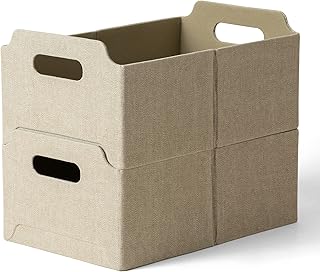 Damtoe Stapelbare Aufbewahrungskörbe aus grauem Leinen, dekorativer Stoff, mit Etiketten für Aufbewahrungsbehälter, Geschenke, leeres Regal, Kinderzimmer, Schrank, Aufbewahrungskorb