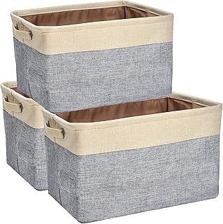 JINCROP Faltbare Aufbewahrungsbox (3 Stück), faltbarer, stabiler Aufbewahrungskorb, aus Baumwolle, würfelförmiger Aufbewahrungskorb mit Griff, Kinderzimmer (Beige und Cyangrau, 38.1 x 25.4 x 24.9 cm)