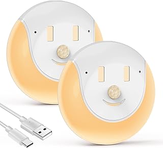 Nachtlicht mit Bewegungsmelder[2 Stück] USB wiederaufladbares Lächeln Nachtlicht mit 3 Modi (Ein / Aus / Automatisch), Licht für Schlafzimmer,Schranklicht,Kinderzimmer,Treppe,Keller,Badezimmer