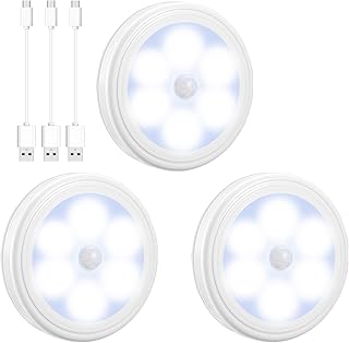 Criacr Nachtlicht USB Bewegungsmelder, USB Wiederaufladbare LED Nachtlicht mit 3 Modi(Auto/ON/Off) und 2 Helligkeit, Nachtlampe Schranklicht für Flur, Schlafzimmer, Treppen usw, Weiß, 3pcs