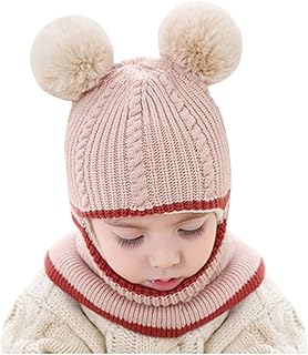 Baby Mädchen Jungen Schalmütze Kleinkind Schlupfmütze Warm Niedlich Wintermütze Kinder Strickmütze mit Bommel Kleinkind Mütze Beanie Hut für Baby 2-7 Jahre