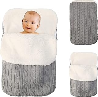 Neugeborenes Baby Wickeldecke, Dickes Baby Kinder Kleinkind stricken weiche warme Fleecedecke Wickelschlafsack für 0-12 Monate Baby Jungen Mädchen