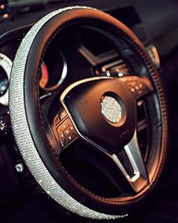 Lenkradhülle mit Strasssteinen, für Damen, glitzernd, glitzernd, Leder, Auto-Lenkradbezug, Zubehör (schwarz)