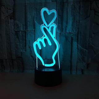 3D Illusionslampe Herz Geste Finger Herzförmige LED Schlafzimmer Dekoration Lampe, 7 wechselnde Farben Touch Nachtlicht für Baby Schlafzimmer Dekoration Kinder Geschenk