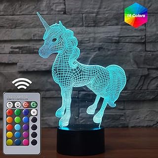 QiLiTd 3D Einhörner Lampe LED Nachtlicht mit Fernbedienung, 16 Farben Wählbar Dimmbare Touch Schalter Nachtlampe Geburtstag Geschenk, Frohe Weihnachten Geschenke Für Mädchen Männer Frauen Kinder