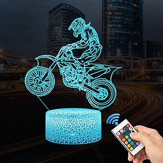 3D Motorrad Rennfahrer Lampe LED Nachtlicht mit Fernbedienung, 16 Farben Dimmbare Touch Schalter Nachtlampe Geburtstag Geschenk, Frohe Weihnachten Für Mädchen Männer Kinder