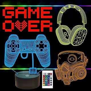 FULLOSUN Pixel Game Over Illusion Lampe, Gamepad 3D Nachtlicht (4 Muster) mit Fernbedienung, 16 Farbwechsel, Gaming Room Headset, Dekoration, bestes Gamer Geschenk